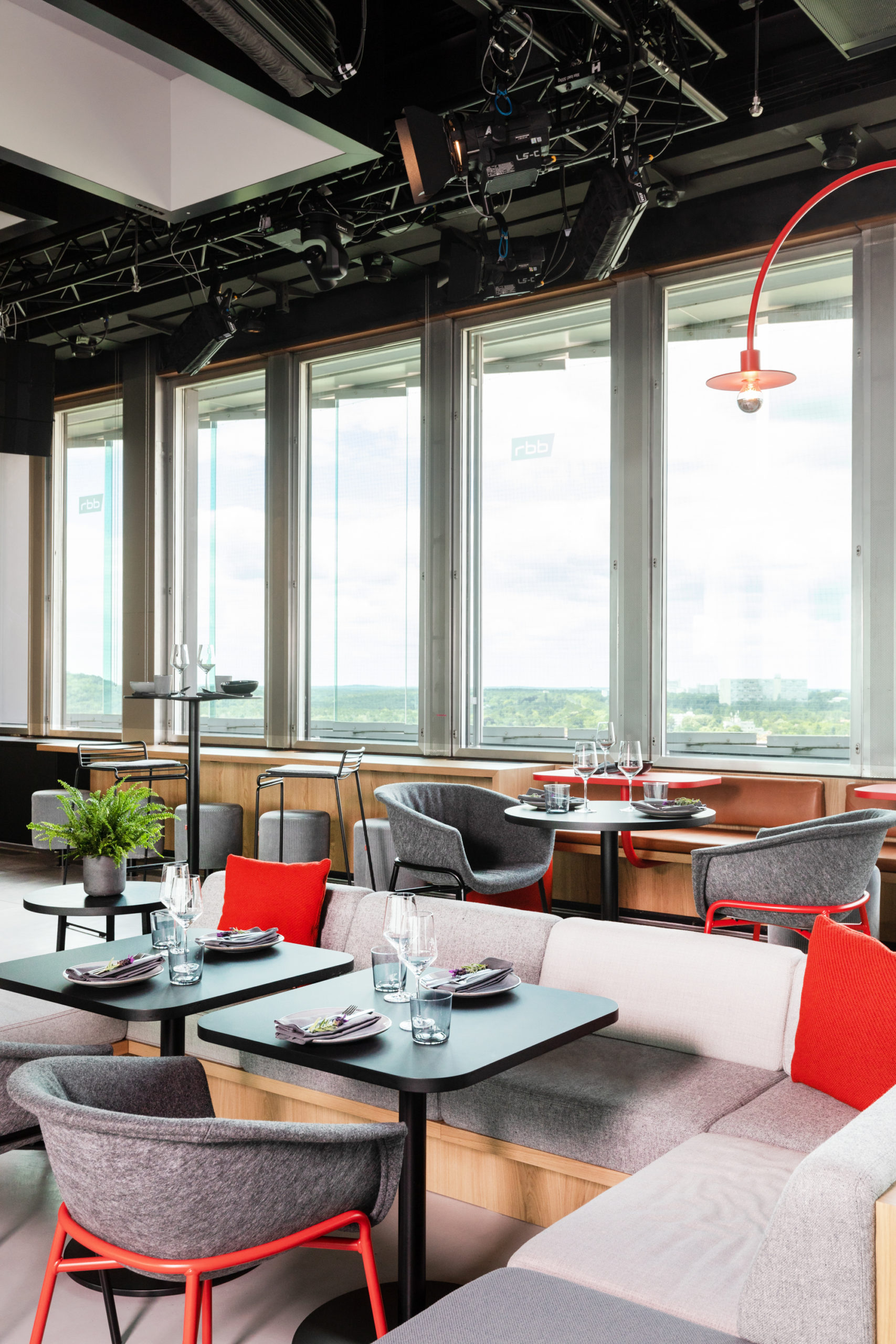 Studio 14 – die rbb Dachlounge ist Broadcast Studio, Restaurant, Rooftop Bar und eine der modernsten Eventlocations der Stadt. Zu ausgewählten Zeiten senden die Radiowellen Fritz, radioeins, rbb 88.8, rbbKultur, Antenne Brandenburg, Inforadio sowie das rbb Fernsehen live ihr Programm. Sie können als Gast hautnah den Moderatoren über die Schultern blicken und dabei gemütlich ausgewählte Speisen und Getränke verzehren.